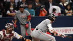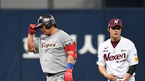 [OSEN=고척, 박준형 기자] 22일 오후 서울 고척 스카이돔에서 '2018 신한은행 MY CAR KBO리그 포스트시즌' 준플레이오프 3차전 넥센 히어로즈와 한화 이글스의 경기가 열렸다.9회초 1사 1루 한화 김태균의 1타점 2루타때 1루 주자 이성열