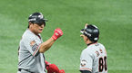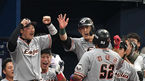 [OSEN=고척, 박준형 기자] 22일 오후 서울 고척 스카이돔에서 '2018 신한은행 MY CAR KBO리그 포스트시즌' 준플레이오프 3차전 넥센 히어로즈와 한화 이글스의 경기가 열렸다.9회초 1사 1루 한화 김태균이 1타점 2루타를 날린뒤 동료들의