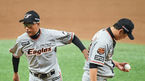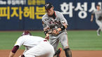 [OSEN=고척, 박준형 기자] 22일 오후 서울 고척 스카이돔에서 '2018 신한은행 MY CAR KBO리그 포스트시즌' 준플레이오프 3차전 넥센 히어로즈와 한화 이글스의 경기가 열렸다.8회말 1사 1,2루 넥센 박정음 병살타때 정근우 1루수가 호수
