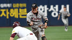 [OSEN=고척, 박준형 기자] 22일 오후 서울 고척 스카이돔에서 '2018 신한은행 MY CAR KBO리그 포스트시즌' 준플레이오프 3차전 넥센 히어로즈와 한화 이글스의 경기가 열렸다.9회초 무사 1루 한화 이성열의 내야땅볼때 넥센 송성문 2루