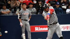 [OSEN=고척, 박준형 기자] 23일 오후 서울 고척 스카이돔에서 '2018 신한은행 MY CAR KBO리그 포스트시즌' 준플레이오프 4차전 넥센 히어로즈와 한화 이글스의 경기가 열렸다.8회초 무사 1루 한화 하주석이 헛스윙 삼진아웃된뒤 아쉬워