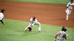 [OSEN=고척, 최규한 기자] 23일 오후 서울 고척 스카이돔에서 '2018 신한은행 MY CAR KBO리그 포스트시즌' 준플레이오프 4차전 넥센 히어로즈와 한화 이글스의 경기가 열렸다.4회말 2사 2, 3루 상황 넥센 김재현을 내야 땅볼로 이끌며 이