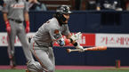 [OSEN=고척, 최규한 기자] 23일 오후 서울 고척 스카이돔에서 '2018 신한은행 MY CAR KBO리그 포스트시즌' 준플레이오프 4차전 넥센 히어로즈와 한화 이글스의 경기가 열렸다.5회초 1사 1루 상황 한화 호잉이 내야 플라이를 치고 아쉬워