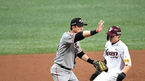 [OSEN=고척, 박준형 기자] 23일 오후 서울 고척 스카이돔에서 '2018 신한은행 MY CAR KBO리그 포스트시즌' 준플레이오프 4차전 넥센 히어로즈와 한화 이글스의 경기가 열렸다.3회말 1사 1루 한화 박주홍이 견제 악송구를 던진뒤 아쉬워