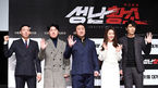 [OSEN=지형준 기자] 23일 오전 서울 압구정 CGV에서 영화 '성난황소' 제작보고회가 열렸다. 배우 박지환, 김민재, 마동석, 송지효, 김성오가 포토타임을 하고 있다. /jpnews@osen.co.kr