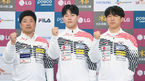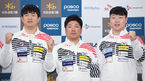 [OSEN=곽영래 기자] 23일 오전 서울 송파구 올림픽파크텔에서 대한 봅슬레이 스켈레톤 국가대표 선수단 미디어데이가 열렸다.대표팀 김동현, 이용 감독, 원윤종이 포토타임을 갖고 있다. / youngrae@osen.co.kr