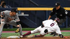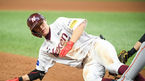 [OSEN=고척, 박준형 기자] 23일 오후 서울 고척 스카이돔에서 '2018 신한은행 MY CAR KBO리그 포스트시즌' 준플레이오프 4차전 넥센 히어로즈와 한화 이글스의 경기가 열렸다.8회말 1사 2,3루 넥센 김민성의 내야땅볼때 3루 주자 샌즈를