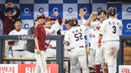 [OSEN=고척, 박준형 기자] 23일 오후 서울 고척 스카이돔에서 '2018 신한은행 MY CAR KBO리그 포스트시즌' 준플레이오프 4차전 넥센 히어로즈와 한화 이글스의 경기가 열렸다.8회말 2사 1,3루 넥센 임병욱의 2타점 적시타때 기뻐하는 넥