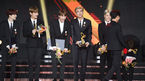 [OSEN=박준형 기자] 24일 오후 서울 방이동 올림픽공원 올림픽홀 광장에서 진행된 2018 대한민국 대중문화예술상 시상식에서 방탄소년단이 제이홉의 소감에 미소 짓고 있다. /soul1014@osen.co.kr