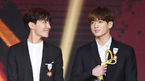 [OSEN=박준형 기자] 24일 오후 서울 방이동 올림픽공원 올림픽홀 광장에서 진행된 2018 대한민국 대중문화예술상 시상식에서 방탄소년단 제이홉과 정국이 이야기를 나누고 있다./soul1014@osen.co.kr