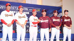 [OSEN=인천, 민경훈 기자] 26일 오후 인천 그랜드 오스티엄 CMCC홀에서 '2018 신한은행 MY CAR KBO' 플레이오프 미디어데이가 열렸다.무대 앞에서 SK 와이번스 힐만 감독과 박종훈, 한동민, 넥센 히어로즈에서는 장정석 감독과 한현희,