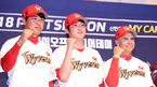 [OSEN=인천, 민경훈 기자] 26일 오후 인천 그랜드 오스티엄 CMCC홀에서 '2018 신한은행 MY CAR KBO' 플레이오프 미디어데이가 열렸다.무대 앞에서 SK 와이번스 힐만 감독과 박종훈, 한동민이 포토타임을 갖고 있다.한편, SK와 넥센이 맞붙