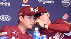 [OSEN=인천, 민경훈 기자] 26일 오후 인천 그랜드 오스티엄 CMCC홀에서 '2018 신한은행 MY CAR KBO' 플레이오프 미디어데이가 열렸다.무대 앞에서 넥센 장정석 감독과 한현희가 귓속말을 나누고 있다.한편, SK와 넥센이 맞붙는 플레이오