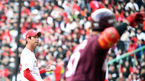 [OSEN=문학, 손용호 기자] 27일 인천 문학 SK 행복드림구장에서 SK 와이번스와 넥센 히어로즈의 '2018 신한은행 MY CAR KBO 플레이오프' 1차전 경기가 열렸다.7회초 무사 1루 김광현이 송성문에게 투런 홈런을 맞고 아쉬워하고 있다./ spjj