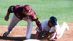 [OSEN=인천,박준형 기자] 27일 인천 문학 SK 행복드림구장에서 열린 SK 와이번스와 넥센 히어로즈의 2018 신한은행 MY CAR KBO 플레이오프 1차전,5회말 SK 김강민의 타석때 1루 주자 강승호가 견제사 당하고 있다. /soul1014@osen.co.kr