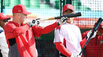 [OSEN=인천,박준형 기자] 27일 인천 문학 SK 행복드림구장에서 열리는 SK 와이번스와 넥센 히어로즈의 2018 신한은행 MY CAR KBO 플레이오프 1차전에 앞서 SK 로맥이 방망이로 대표 쏘는 자세를 취하고 있다./soul1014@osen.co.kr