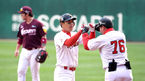 [OSEN=인천, 지형준 기자] 28일 오후 인천 SK행복드림구장에서 '2018 신한은행 MY CAR KBO리그 포스트시즌' 플레이오프 2차전 SK 와이번스와 넥센 히어로즈의 경기가 열렸다. 3회말 2사 3루에서 SK 김강민이 동점 적시타를 날리고 기뻐하