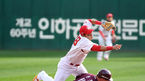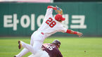 [OSEN=인천, 최규한 기자] 28일 인천 SK행복드림구장에서 '2018 신한은행 MY CAR KBO리그 포스트시즌' 플레이오프 2차전 SK 와이번스와 넥센 히어로즈의 경기가 열렸다.3회초 1사 1, 2루 상황 넥센 박병호의 병살타 때 넥센 주자 샌즈와 SK
