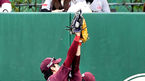 [OSEN=인천, 최규한 기자] 28일 인천 SK행복드림구장에서 '2018 신한은행 MY CAR KBO리그 포스트시즌' 플레이오프 2차전 SK 와이번스와 넥센 히어로즈의 경기가 열렸다.1회초 1사 1루 상황 넥센 샌즈의 파울플라이를 처리한 SK 포수 이재