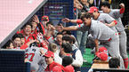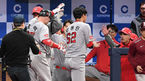 [OSEN=고척돔, 지형준 기자] 30일 오후 서울 고척스카이돔에서 '2018 신한은행 MY CAR KBO리그 포스트시즌' 플레이오프 3차전 SK 와이번스와 넥센 히어로즈의 경기가 열렸다. 2회초 무사에서 SK 로맥이 선제 솔로포를 날리고 동료선수들