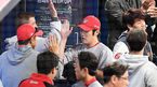 [OSEN=고척돔, 지형준 기자] 30일 오후 서울 고척스카이돔에서 '2018 신한은행 MY CAR KBO리그 포스트시즌' 플레이오프 3차전 SK 와이번스와 넥센 히어로즈의 경기가 열렸다. 1회말 수비를 마친 SK 박종훈이 더그아웃에서 동료선수들과