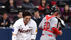 [OSEN=고척돔, 이대선 기자] 30일 오후 서울 고척스카이돔에서 '2018 신한은행 MY CAR KBO리그 포스트시즌' 플레이오프 3차전 SK 와이번스와 넥센 히어로즈의 경기가 열렸다.1회말 2사 1루에서 넥센 박병호가 삼진으로 물러나며 아쉬워