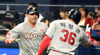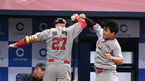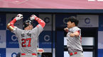 [OSEN=고척, 이대선 기자] 30일 오후 서울 고척 스카이돔에서 '2018 신한은행 MY CAR KBO 포스트시즌 플레이오프' 넥센 히어로즈-SK 와이번스 3차전 경기가 열렸다.2회초 무사 SK 로맥이 솔로홈런을 치고 박정권과 기뻐하고 있다./spjj@osen.