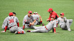 [OSEN=고척돔, 지형준 기자] 30일 오후 서울 고척스카이돔에서 '2018 신한은행 MY CAR KBO리그 포스트시즌' 플레이오프 3차전 SK 와이번스와 넥센 히어로즈의 경기가 열렸다. 경기에 앞서 SK 선수들이 몸을 풀고 있다. /jpnews@osen.co.kr