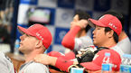 [OSEN=고척, 이대선 기자] 30일 오후 서울 고척 스카이돔에서 '2018 신한은행 MY CAR KBO 포스트시즌 플레이오프' 넥센 히어로즈-SK 와이번스 3차전 경기가 열렸다.경기 전 SK 최정이 로맥의 어깨를 주물러주고있다./spjj@osen.co.kr