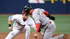 [OSEN=고척돔, 지형준 기자] 30일 오후 서울 고척스카이돔에서 '2018 신한은행 MY CAR KBO리그 포스트시즌' 플레이오프 3차전 SK 와이번스와 넥센 히어로즈의 경기가 열렸다. 8회초 무사에서 SK 김강민이 2루 도루를 시도했지만 넥센 김