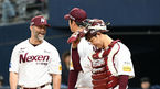 [OSEN=고척, 박재만 기자] 31일 오후 서울 고척스카이돔에서 '2018 신한은행 MY CAR KBO리그 포스트시즌' 플레이오프 4차전 SK 와이번스와 넥센 히어로즈의 경기가 열렸다.8회초 선두타자 SK 최정에게 볼넷을 허용한 직후 넥센 나이트 코