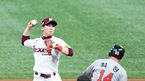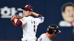 [OSEN=고척, 박재만 기자] 31일 오후 서울 고척스카이돔에서 '2018 신한은행 MY CAR KBO리그 포스트시즌' 플레이오프 4차전 SK 와이번스와 넥센 히어로즈의 경기가 열렸다.8회초 무사 1루 SK 로맥의 타구를 넥센 김혜성이 병살 처리하고