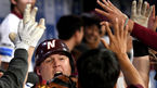 [OSEN=고척, 박재만 기자] 31일 오후 서울 고척스카이돔에서 '2018 신한은행 MY CAR KBO리그 포스트시즌' 플레이오프 4차전 SK 와이번스와 넥센 히어로즈의 경기가 열렸다.4회말 1사 1루 넥센 샌즈 좌월 2점 홈런을 날린 뒤 선수들과 하