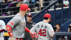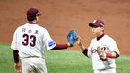 [OSEN=고척돔, 지형준 기자] 31일 오후 서울 고척스카이돔에서 '2018 신한은행 MY CAR KBO리그 포스트시즌' 플레이오프 4차전 SK 와이번스와 넥센 히어로즈의 경기가 열렸다. 3회말 수비를 마치고 SK 문승원이 손혁 코치의 격려를 받으며