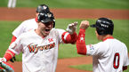 [OSEN=인천, 최규한 기자] 2일 오후 인천 SK행복드림구장에서 '2018 신한은행 MY CAR KBO리그 포스트시즌' 플레이오프 5차전 SK 와이번스와 넥센 히어로즈의 경기가 열렸다.6회말 1사 1, 2루 상황 SK 로맥이 동점 좌월 스리런포를 날리고