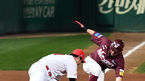 [OSEN=인천, 지형준 기자] 2일 오후 문학 SK 행복드림구장에서 열린 SK 와이번스와 넥센 히어로즈의 '2018 신한은행 MY CAR KBO 플레이오프' 5차전. 4회초 무사 2루에서 넥센 서건창이 박병호의 우익수 플라이에 태그업, 3루에서 SK 최정에