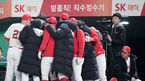 [OSEN=문학, 이동해 기자] 2일 오후 문학 SK 행복드림구장에서 열린 SK 와이번스와 넥센 히어로즈의 2018 신한은행 MY CAR KBO 플레이오프 5차전 경기 시작 전 SK 선수들이 화이팅을 외치고 있다. / eastsea@osen.co.kr