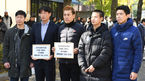 [OSEN=최규한 기자] 아산 무궁화 축구단 존속을 위한 축구인 결의대회가 2일 오전 서울 청와대 앞 분수광장에서 열렸다.송종국, 아산 박동혁 감독, 김병지, 송중국, 아산 유스 대표 선수, 현영민(왼쪽부터)이 호소문을 들고 취재진