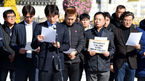 [OSEN=최규한 기자] 아산 무궁화 축구단 존속을 위한 축구인 결의대회가 2일 오전 서울 청와대 앞 분수광장에서 열렸다.홍명보 전무이사, 최진철 위원장, 최용수 FC서울 감독, OB축구회, 축구 원로 등이 호소문 낭독 후 집회 구호를