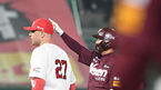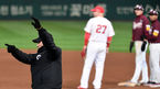 [OSEN=인천, 지형준 기자] 2일 오후 문학 SK 행복드림구장에서 열린 SK 와이번스와 넥센 히어로즈의 '2018 신한은행 MY CAR KBO 플레이오프' 5차전. 연장 10회초 무사 2루에서 넥센 김민성이 역전 1타점 적시 2루타를 날리자 장정석 감독이