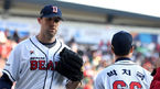 [OSEN=잠실, 최규한 기자] 4일 서울 잠실야구장에서 '2018 신한은행 MY CAR KBO 포스트시즌' 한국시리즈 1차전 두산 베어스와 SK 와이번스의 경기가 열렸다.7회초 1사 2루 상황 두산 선발 린드블럼이 마운드를 내려가며 교체되는 박치국