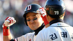 [OSEN=잠실, 이대선 기자] 4일 오후 서울 잠실야구장에서 '2018 신한은행 MY CAR KBO 포스트시즌' 한국시리즈 1차전 두산 베어스와 SK 와이번스의 경기가 열렸다.5회말 1사 만루에서 두산 최주환이 우전 2타점 적시타를 치고 환호하고 있