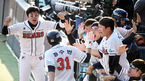 [OSEN=잠실, 이대선 기자] 4일 오후 서울 잠실야구장에서 '2018 신한은행 MY CAR KBO 포스트시즌' 한국시리즈 1차전 두산 베어스와 SK 와이번스의 경기가 열렸다.5회말 1사 만루에서 두산 최주환의 역전 적시타 때 홈을 밟은 두산 김재환