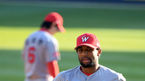 [OSEN=잠실, 지형준 기자] 4일 오전 서울 잠실야구장에서 '2018 신한은행 MY CAR KBO 포스트시즌' 한국시리즈 1차전 두산 베어스와 SK 와이번스의 경기가 열렸다. 5회말 2사 2,3루에서 두산 김재호가 SK 산체스의 몸쪽 높은 볼에 표정을 찧