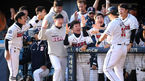 [OSEN=잠실, 이대선 기자] 4일 오후 서울 잠실야구장에서 '2018 신한은행 MY CAR KBO 포스트시즌' 한국시리즈 1차전 두산 베어스와 SK 와이번스의 경기가 열렸다.5회말 1사 만루에서 두산 최주환의 역전 적시타 때 홈을 밟은 두산 정수빈