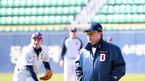 [OSEN=잠실, 이대선 기자] 4일 오전 서울 잠실야구장에서 열릴 '2018 신한은행 MY CAR KBO 포스트시즌' 한국시리즈 1차전 두산 베어스와 SK 와이번스의 경기에 앞서 두산 김태형 감독이 훈련 중인 선수들을 바라보고 있다./sunday@osen.co.kr