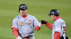 [OSEN=잠실, 이대선 기자] 5일 오후 서울 잠실야구장에서 '2018 신한은행 MY CAR KBO 포스트시즌' 한국시리즈 2차전 두산 베어스와 SK 와이번스의 경기가 열렸다.8회초 1사에서 SK 박정권이 중전 안타를 치고 박재상 코치와 하이파이브를