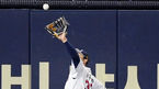 [OSEN=잠실, 이대선 기자] 5일 오후 서울 잠실야구장에서 '2018 신한은행 MY CAR KBO 포스트시즌' 한국시리즈 2차전 두산 베어스와 SK 와이번스의 경기가 열렸다.8회초 1사 1루에서 두산 김재환이 SK 이재원의 타구를 잡아내고 있다./sunda