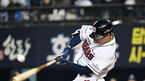 [OSEN=잠실, 이동해 기자] 5일 오후 서울 잠실야구장에서 '2018 신한은행 MY CAR KBO 포스트시즌' 한국시리즈 2차전 두산 베어스와 SK 와이번스의 경기가 열렸다.8회말 무사1루 두산 김재환이 안타를 뽑아내고 있다. / eastsea@osen.co.kr