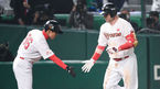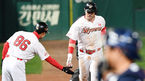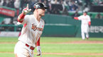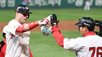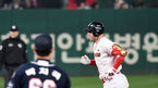 [OSEN=인천, 민경훈 기자] 7일 오후 인천 SK행복드림구장에서 열린 '2018 신한은행 MY CAR KBO 포스트시즌' 한국시리즈 3차전 SK 와이번스와 두산 베어스의 경기, 8회말 SK 선두타자 로맥이 중월 솔로 홈런을 날린 후 홈을 밟고 있다./rumi@o